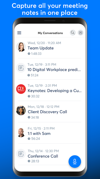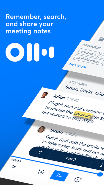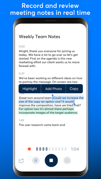 La aplicación también es ideal para las personas que quieren hacer una lista de las cosas que se van a discutir en una reunión o conferencia. También se puede utilizar para transcribir una grabación desde tu propio teléfono o desde otro dispositivo.